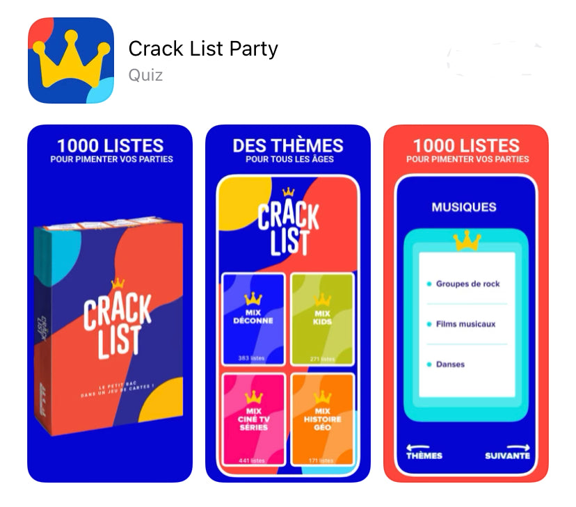 CRACK LIST took the best of the best-known game of our childhood to create the new atmosphere card game with family or friends ; ⚡️ FUN AND FAST: Challenge, low blows, a little strategy and especially crazy laughs guaranteed! Crack list the perfect gift for the end of the year