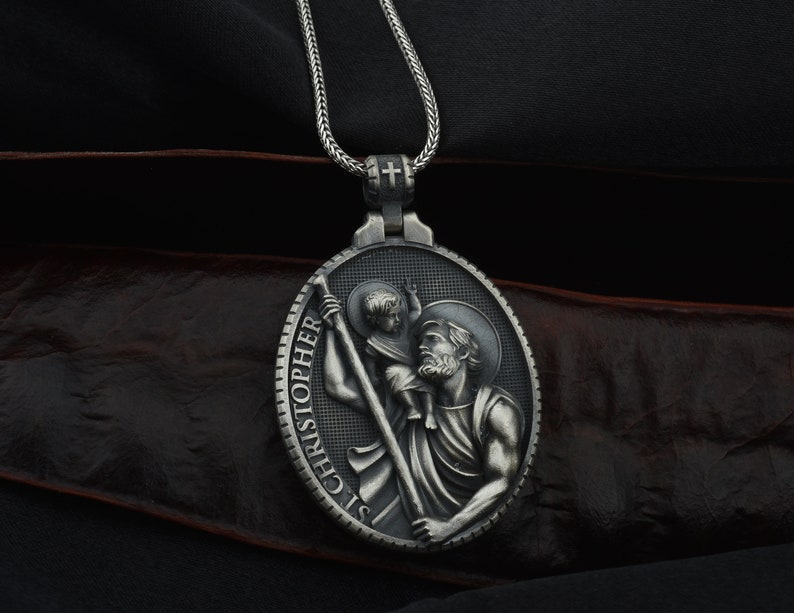 Gold St Christopher Necklace - Mens Saint Pendant Travelers, Gift Religious Jewelry, Protection Medal, Men Silver Medallion, Women Gift to Husband, Best Friend Present, Catholic Charm (Silver) 4.3 out of 5 stars 49. $38.00 $ 38. 00. FREE delivery Tue, Apr 30 . Or fastest delivery Wed, Apr 24 .