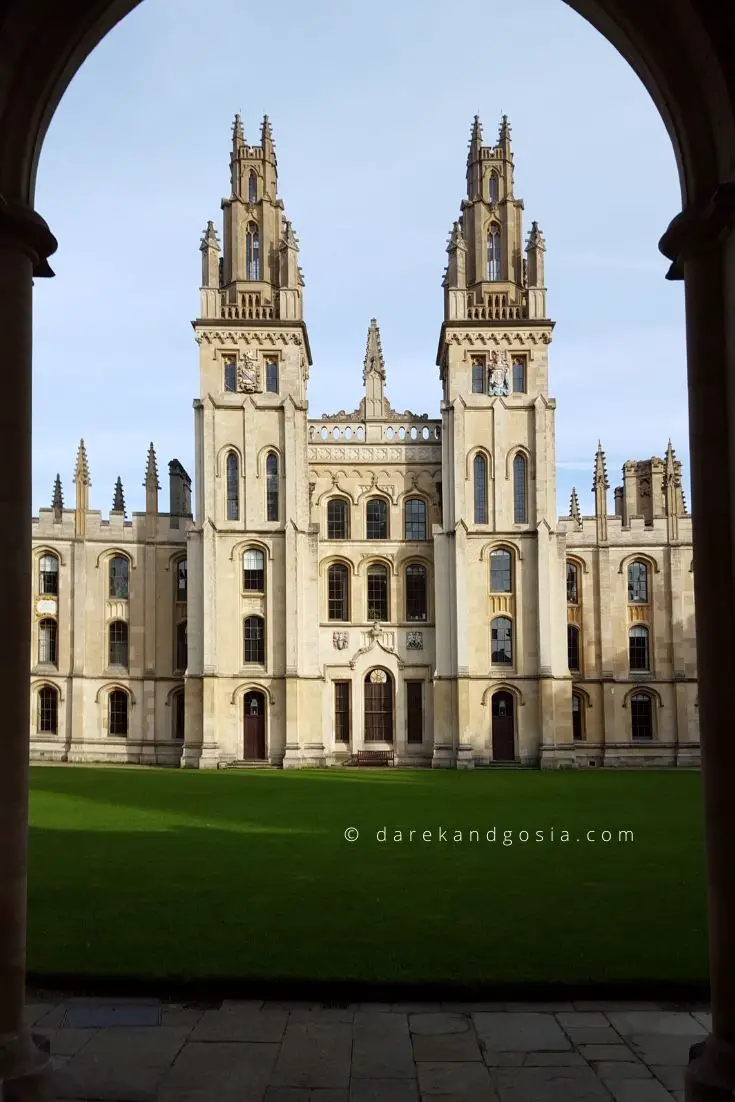 Stop to see St. Mary Church with its stained glass window or just taking in the willow trees as you wander your way through this gorgeous part of Oxford for free. 25. All Souls College. A beautiful college in Oxford, All Souls College allows visitor into its hallowed halls on weekdays free of charge.